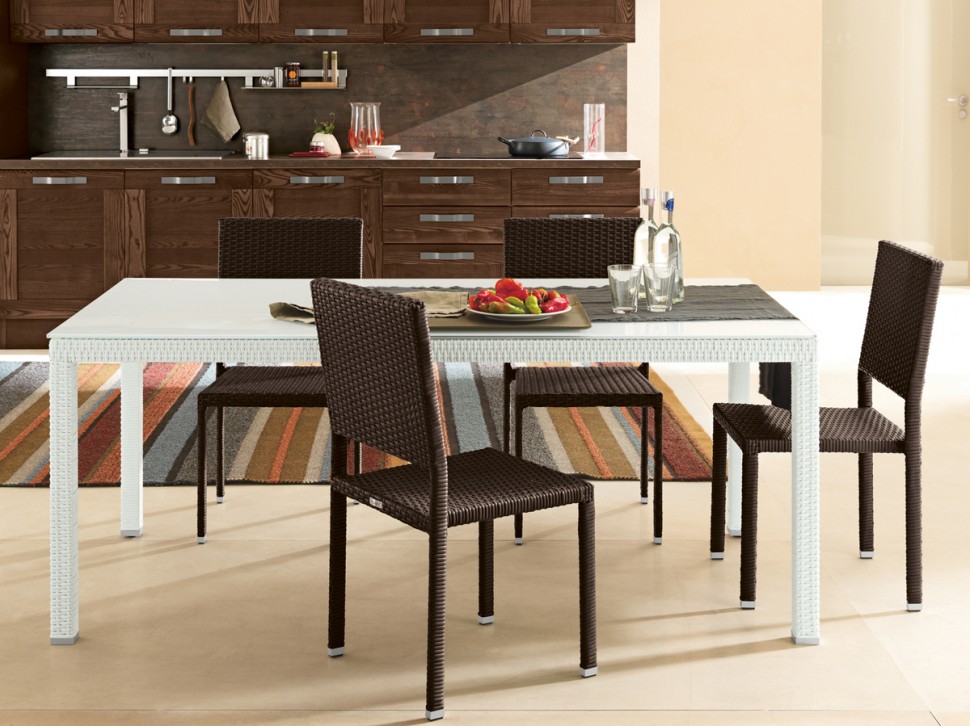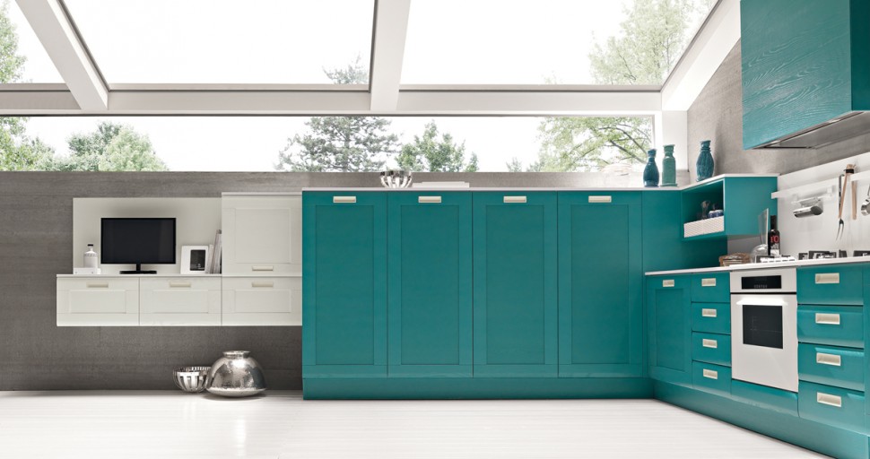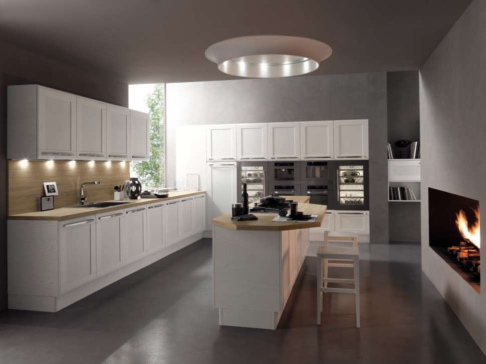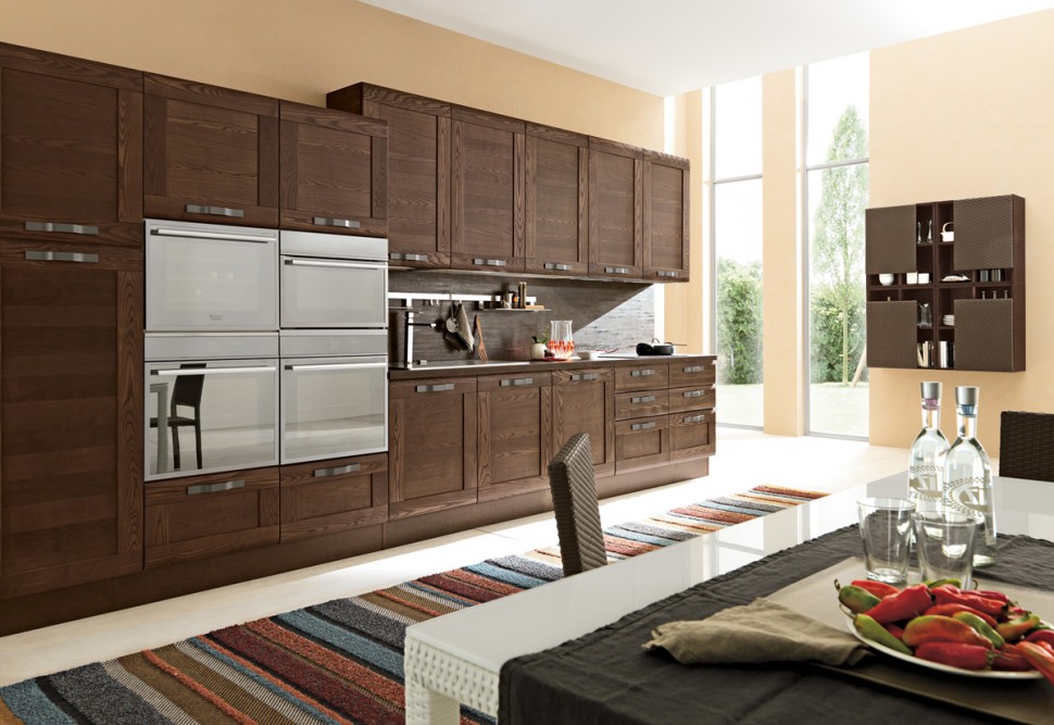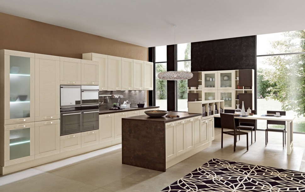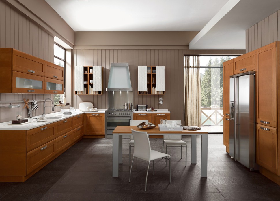 Οι χειρολαβές της Kelly μπορούν να παραχθούν και σε ξύλο κερασιάς ή φλαμουριάς ενισχύοντας το παραδοσιακό της παρελθόν χωρίς όμως να χάνει το σύγχρονο χαρακτήρα της. Η στροφή στα φυσικά υλικά ενισχύεται από την χρήση του υφασμάτινου ρατάν σε πολλά στοιχεία της κουζίνας.
