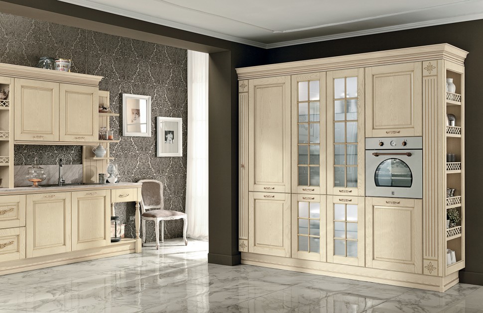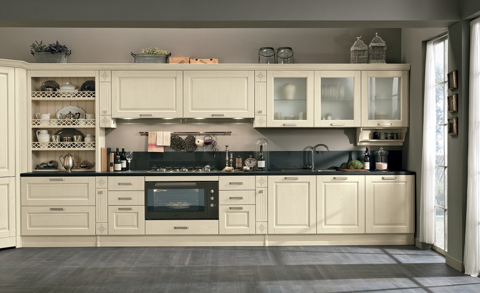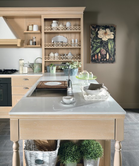 Η Opera είναι ένα μοντέλο νεοκλασικό. Η ομορφιά της κρύβεται στις λεπτομέρειες όπως τα ανοιχτά στοιχεία που μπορούν να χρησιμοποιηθούν στις νησίδες συνοδευόμενα από μικρά εργονομικά συρτάρια. Η μεσογειακή της ομορφιά και το ταμπεραμέντο της αναδεικνύονται μέσα από τα ειδικά διακοσμητικά της ράφια που συμπληρώνουν τα υπόλοιπα στοιχεία.