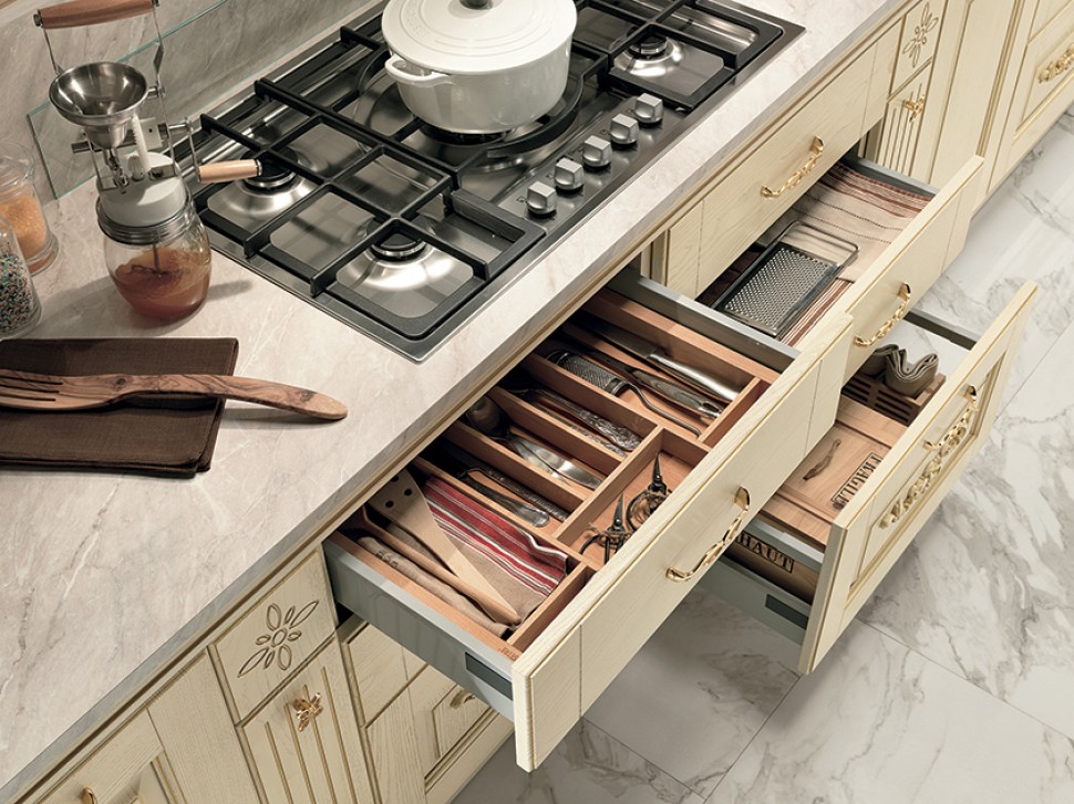 Μεγάλα και μικρά διαμερίσματα χώρων κρύβονται πίσω από ειδικά σκαλιστές πόρτες – κάθε κλασσική κουζίνα μπορεί να εμπεριέχει ένα μεγάλο κομμάτι εργονομίας κρυμμένο πίσω από τις πόρτες τις. Υπογραμμίζοντας τις λεπτομέρειες η Opera δίνει στην δυνατότητα στον τελικό καταναλωτή να διαμορφώσει μία κουζίνα επιλέγοντας μέσα από μία μεγάλη γκάμα αξεσουάρ – μία κουζίνα που θα αντικατοπτρίζει την προσωπικότητα του πελάτη.