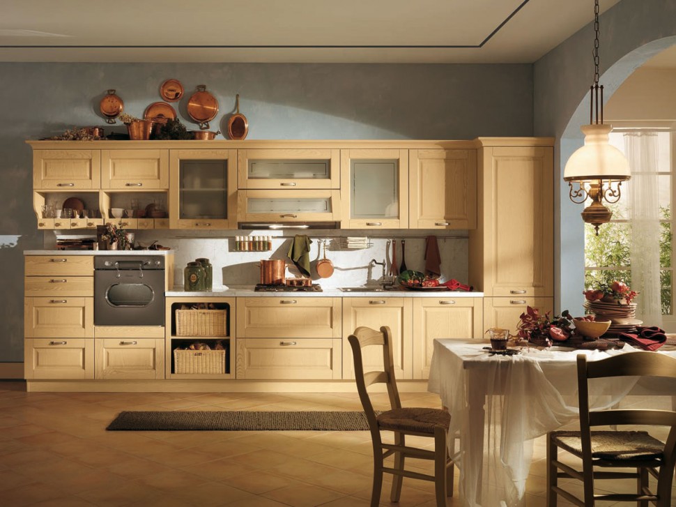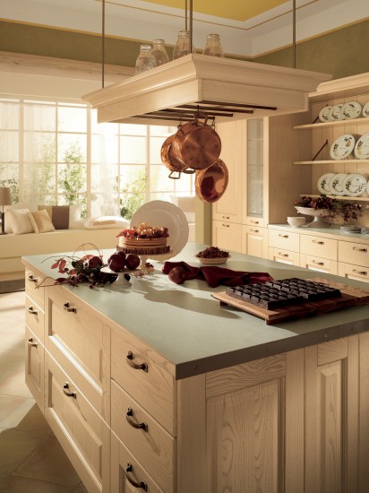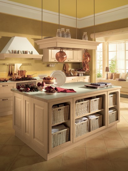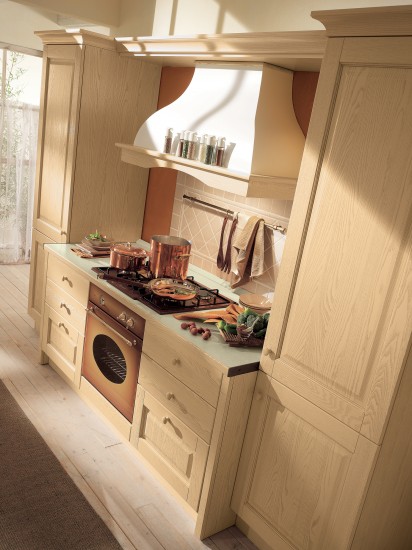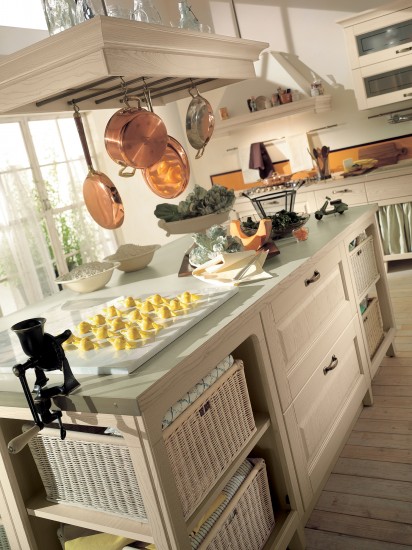 Η Provenza επαναπροσδιορίζει την απλότητα της ξύλινης ντεκαπέ κουζίνας. Ίσοι ταμπλάδες στις πόρτες και ειδικά αξεσουάρ εποχής όπως είναι τα καλάθια στα ανοιχτά στοιχεία βάσεως αλλά και τα παλαιωμένα μπρούτζινα πόμολα συνθέτουν το σκηνικό μιας επαρχιακής μεσογειακής πόλης.