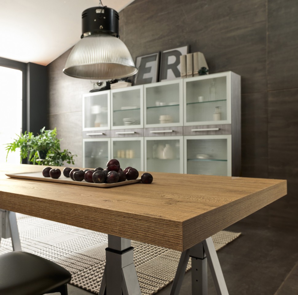 Μία κουζίνα που αν και δεν ανήκει στις κλασσικές δεν θα φύγει ποτέ από την μόδα. Ένα τέλειο παράδειγμα τέλειας συμβίωσης μεταξύ δημιουργικότητας και λειτουργικότητας. Το Industrial στυλ έχει αναβιώσει για τα καλά σήμερα – δεν είναι τίποτε άλλο από ανακυκλωμένες τάσεις του παρελθόντος με πινελιές του σήμερα. Η Sand δένει άψογα με τα παραδοσιακά τσιμεντένια πλακάκια Σαρδηνίας που τα βρίσκουμε συνήθως μόνο σε παλιά σπίτια. Φανταστείτε ένα σπίτι διακοσμημένο με παλιά αντικείμενα πάνω σε ξύλινα ράφια με μεταλλικές βιτρίνες στα κρεμαστά ερμάρια…Έτσι δημιουργείται ένα δωμάτιο με στοιχεία της Sand Industrial.