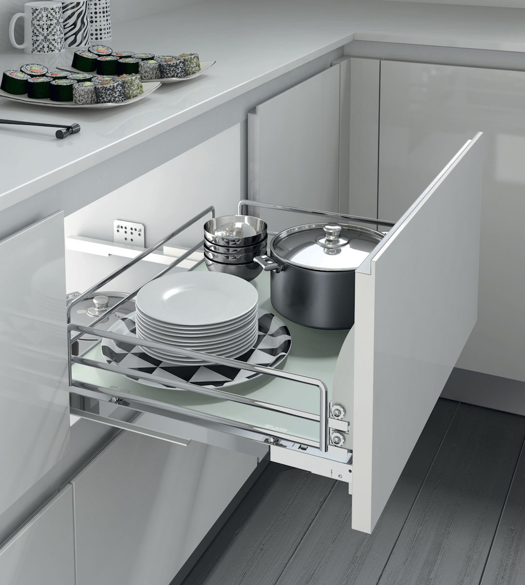 Η Inoxa είναι ηγέτιδα κατασκευάστρια εταιρεία στους συρμάτινους μηχανισμούς επίπλων κουζίνας. Η προσθήκη μηχανισμών Inoxa στην κουζίνα σας κάνει την προετοιμασία του φαγητού και την αποθήκευση των σκευών σας διασκέδαση.